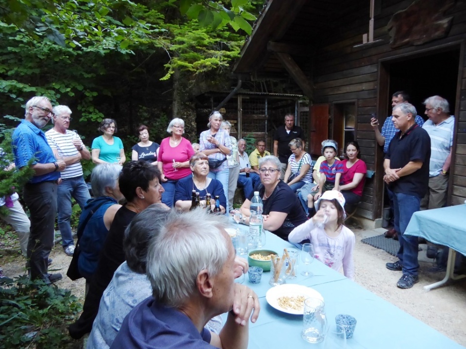 Am 13. August 2016 waren alle Helferinnen und Helfer des NVF bei wunderschönem Sommerwetter zu einem Essen auf dem Vorplatz bei der Vogelschutzhütte eingeladen. Den Ort hatte Peter Schneider gewählt, weil der NVF die Hütte nun genau seit 50 Jahren benutzen kann. Ernst Jäggi konnte als Zeitzeuge und langjähriger 'Hüttendienstler' aus erster Hand berichten, wie damals die Übernahme der Hütte durch den NVF erfolgte.