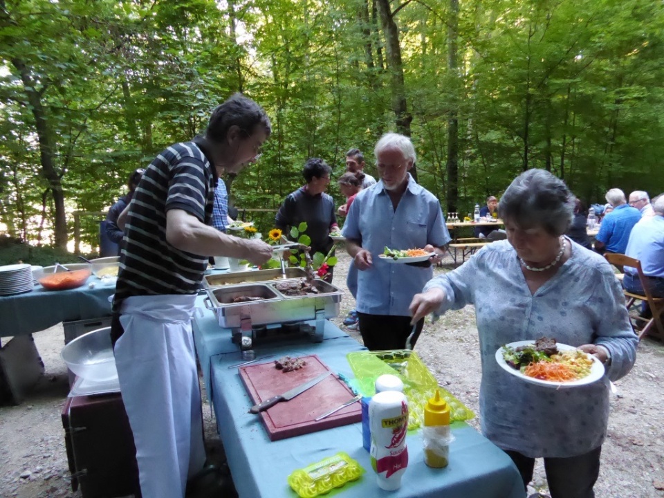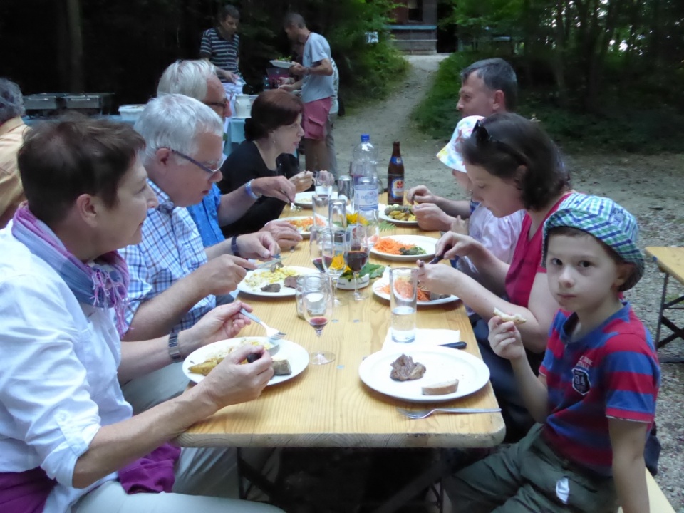 Verwöhnt wurden die Gäste diesmal mit Salaten und Grilladen, die von Christoph Giertz und Sohn bereitgestellt wurden (erstklassig!) sowie mit Crèmeschnitten aus dem Hause Aebischer! Dazu ein feiner Wein oder ein kühles Bier und viel Zeit für Gespräche.