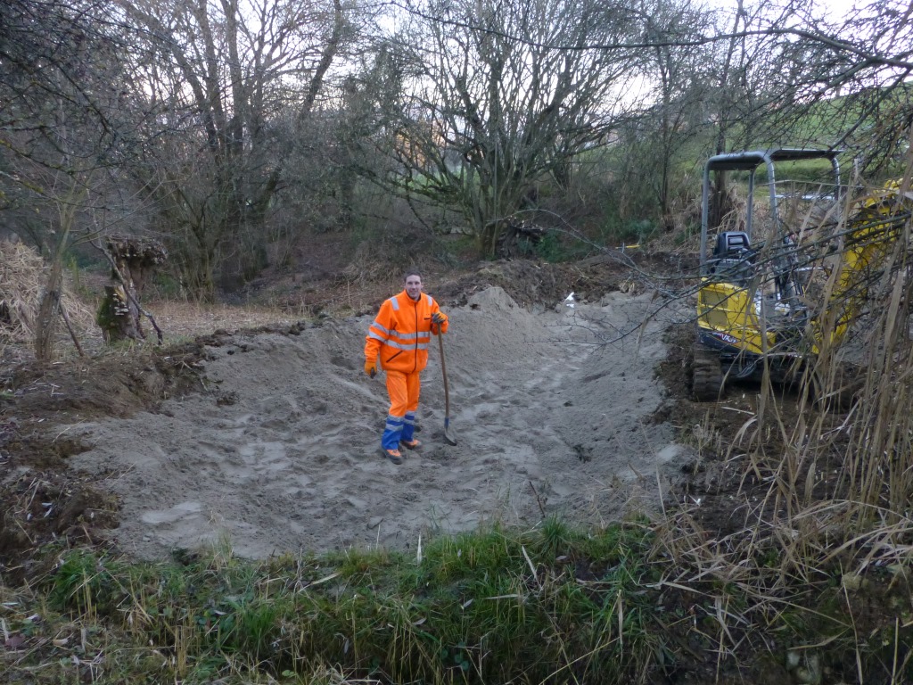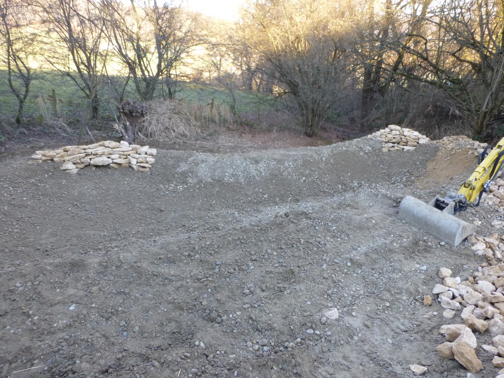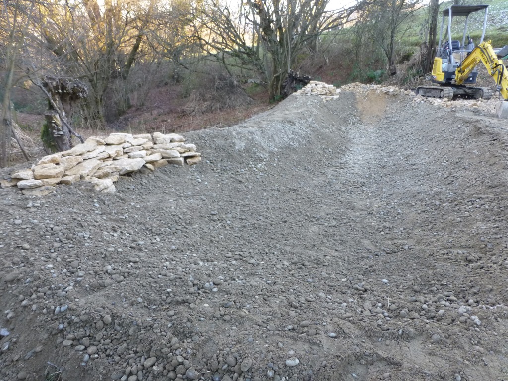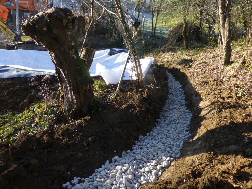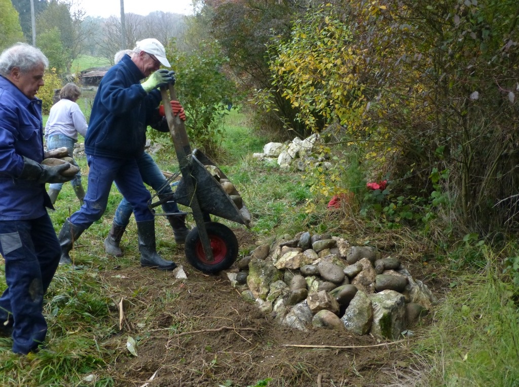 Bei der Sanierung der Schönmattstrasse durch die Gemeinde im August 2016 wurde auch die Steinmauer im untersten Abschnitt von grobem Gebüsch befreit. Dank der Sperrung der Strasse bot sich damit eine gute Gelegenheit, die Mauer als Naturobjekt aufzuwerten. Stark zerfallene Partien wurden als Trockenmauer mit Hohlräumen und lockerer Erde hinter den sichtbaren Steinen neu aufgebaut. Bei den noch intakten Bereichen wurde nur der Bewuchs entfernt und die Fugen so weit als möglich von Erde befreit. Da viele Steine stark zerfallen waren, ist die Mauer zwar nun etwas niedriger, ein Steinhaufen mit "Abfallsteinen" bietet aber einen gut besonnten Lebensraum für Eidechsen und andere wärmeliebende Tiere.