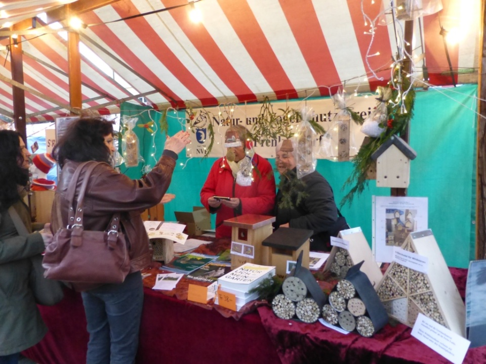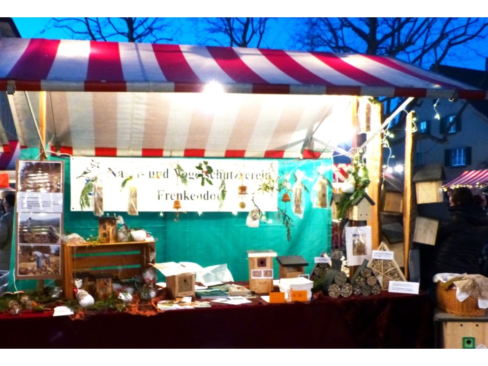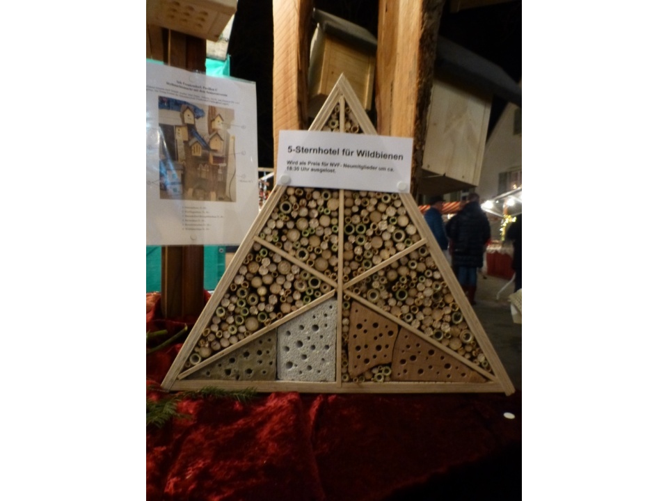 Diese Jahr war der NVF wieder am Frenkendörfer Weihnachtsmarkt vertreten und konnte auf diese Weise seine Arbeit einem grösseren Kreis bekannt machen. Erfreulicherweise haben sich aus den vielen Gesprächen auch einige Neu-Mitgliedschaften ergeben. Unter diesen wurde das grosse Wildbienen-Hotel und zwei kleinere Versionen als Preise verlost.